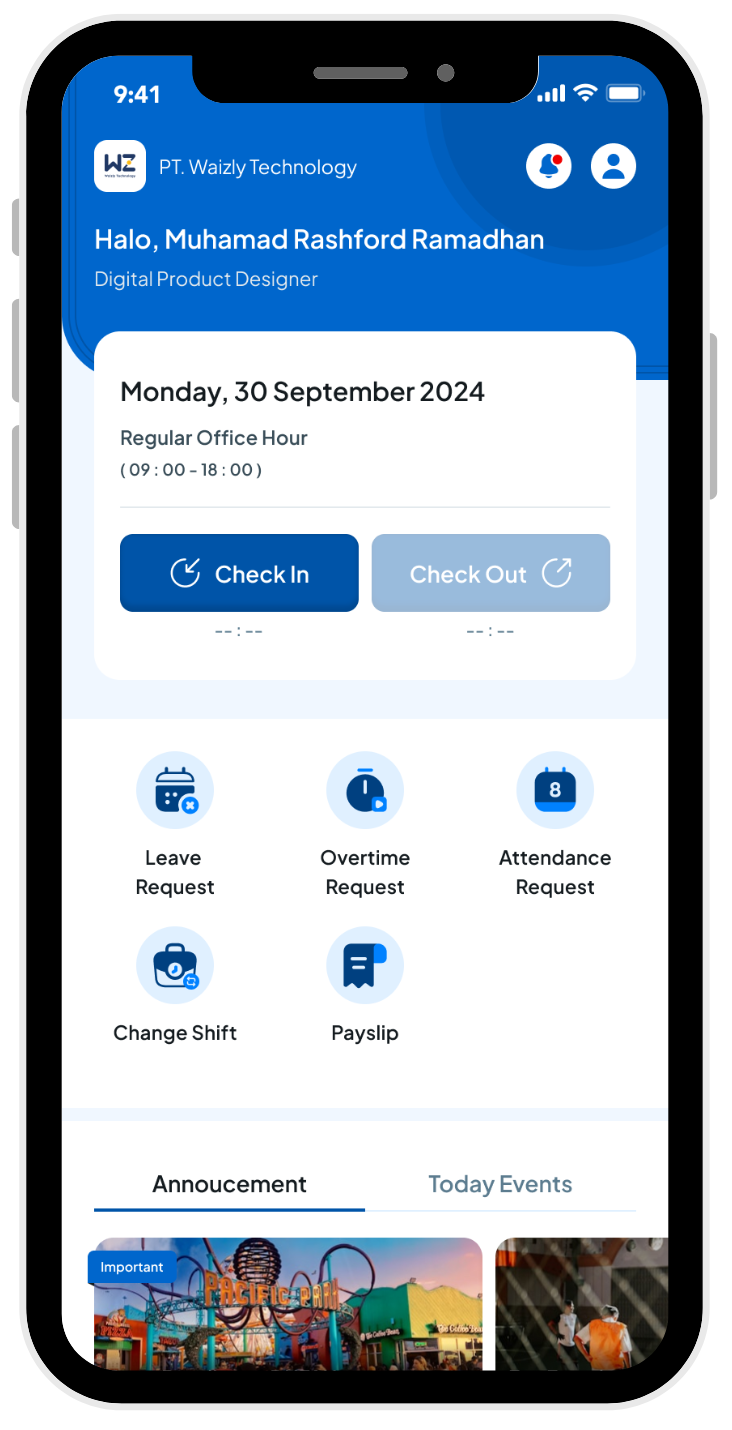 Ajukan cuti/izin langsung dari aplikasi. Notifikasi real-time untuk atasan. Tanpa formulir fisik.